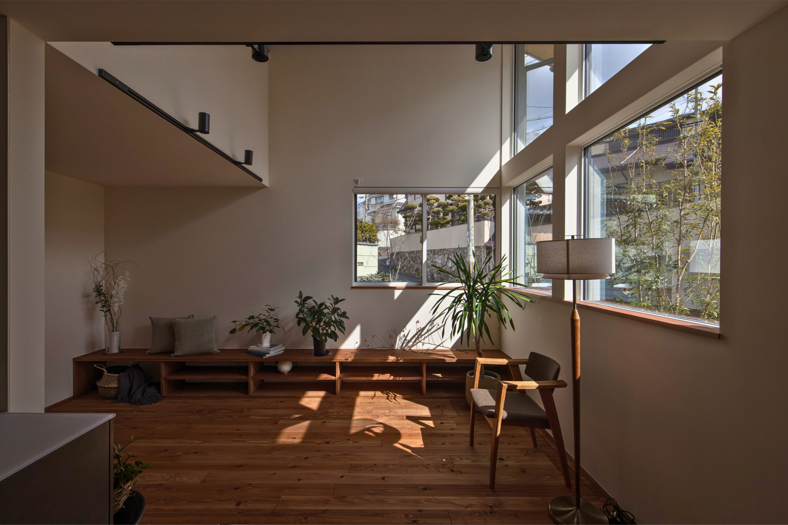 • 南面の4連層の大開口からは光が流れ込み、自然と呼応する心地よさが広がる。